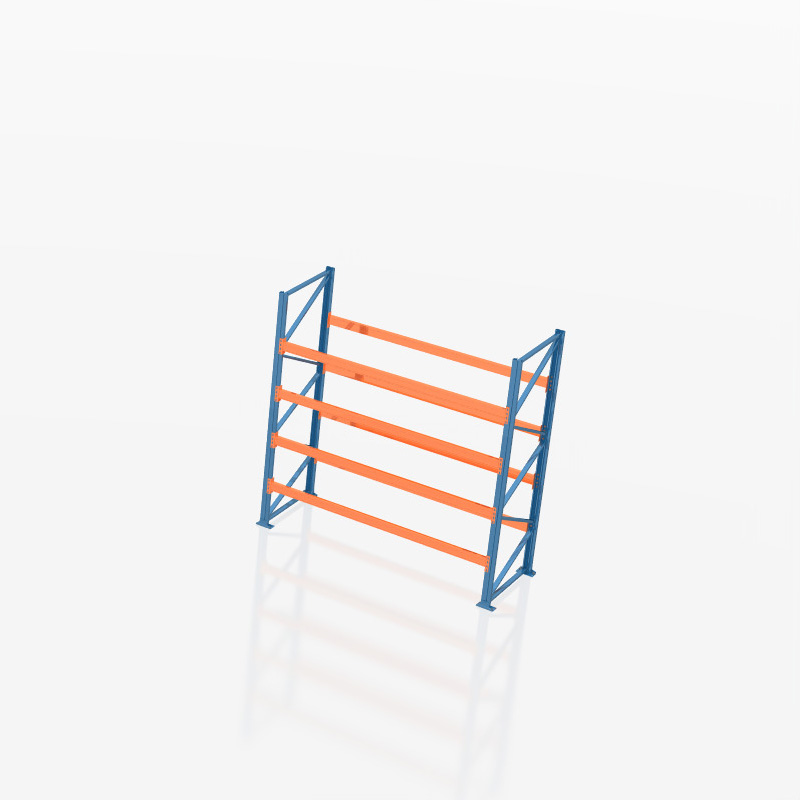 Neues Palettenregal NEDCON (Grundregal) für die Lagerung von Paletten mit einer Fachlast von bis zu 1000 kg. Die Feldlast entspricht bei dieser Regalkonfiguration 4000 kg. Das Grundregal mit den Abmessungen H 3000 x T 1100 x L 2960 mm, ist mit 4 Balkenpaaren ausgestattet. Die Rahmen sind capriblau - RAL 5019, die Balken hellorange - RAL 2008 lackiert.